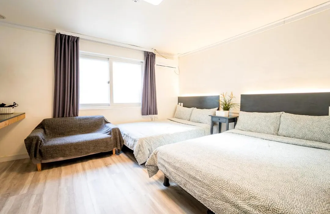 Dit hotel in Seoel beschikt over rookvrije kamers die zijn uitgerust met airconditioning en gratis WiFi en een flatscreen TV met satellietzenders. Deze kamers bieden ook een apart toilet en een douche in badkamers naast een waterkoker, een koelkast en een kookplaat.
